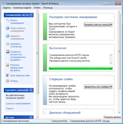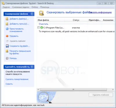 Spybot Search & Destroy по праву считается одним из наиболее эффективных решений в своём сегменте. Слоган «Найти и уничтожить» отражает основную задачу программы — выявлять и устранять угрозы. Утилита корректно взаимодействует с антивирусами и не вызывает конфликтов, поэтому может использоваться как дополнительный уровень защиты системы.