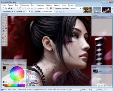 Бесплатный графический редактор с широким набором инструментов и эффектов для обработки изображений. Программа поддерживает работу со слоями, позволяет импортировать фотографии со сканера и цифровых камер, а также расширять функциональность за счёт подключения плагинов.