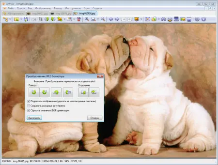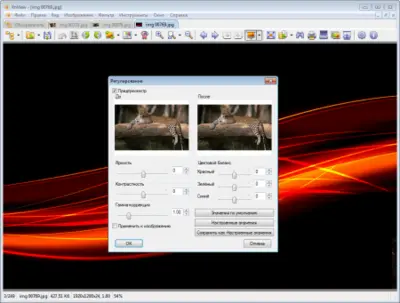 Если нужно показать друзьям фотографии из путешествия или собрать галерею для сайта, XnView станет практичным решением. Помимо комфортного просмотра, приложение позволяет выполнить базовую коррекцию буквально за несколько кликов. В отличие от ряда аналогов, многие инструменты (более 20) вынесены прямо на верхнюю панель, что ускоряет доступ к основным функциям без постоянного перехода по меню.