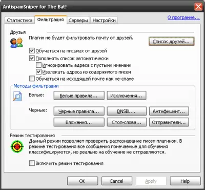 Помимо интеллектуальной фильтрации, AntispamSniper предлагает ряд дополнительных инструментов защиты. В программе реализованы: