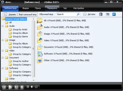 Ares Galaxy — бесплатный клиент для обмена файлами в пиринговой (P2P) сети с поддержкой BitTorrent. Программа позволяет скачивать и раздавать файлы напрямую между пользователями, а также общаться через встроенный чат и воспроизводить медиа без стороннего ПО.