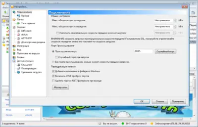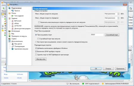 Клиент позволяет скачивать данные на максимально доступной скорости вашего соединения. Поддерживается одновременная загрузка нескольких файлов с гибким распределением пропускной способности: можно задать приоритет, ограничить максимальную скорость или поставить задачу на паузу. Встроенная статистика отображает скорость, объём переданных данных и состояние трекеров.