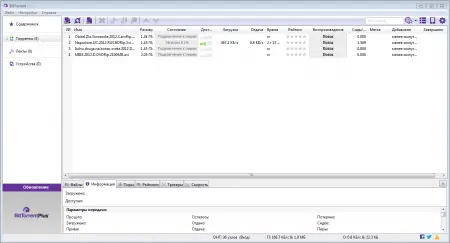 По возможностям клиент практически идентичен uTorrent: интерфейс, логика работы и инструменты управления загрузками схожи. Различия в основном касаются визуального оформления и отдельных названий пунктов меню. Пользователь может параллельно скачивать несколько файлов, настраивать приоритеты и ограничивать скорость для каждой задачи.