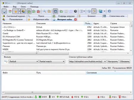 Когда на смену локальным сетям и FTP пришел открытый доступ в Интернет, с его приходом эволюционировали и файлообменники. Сегодня многие сайты ставят ограничения на скорость загрузки, в программе dc++ никаких ограничений нет, а скорость закачки зависит от качества вашего интернет-соединения. Кроме простого обмена информацией вы можете общаться с другими пользователями посредством общего чата или личных диалогов.