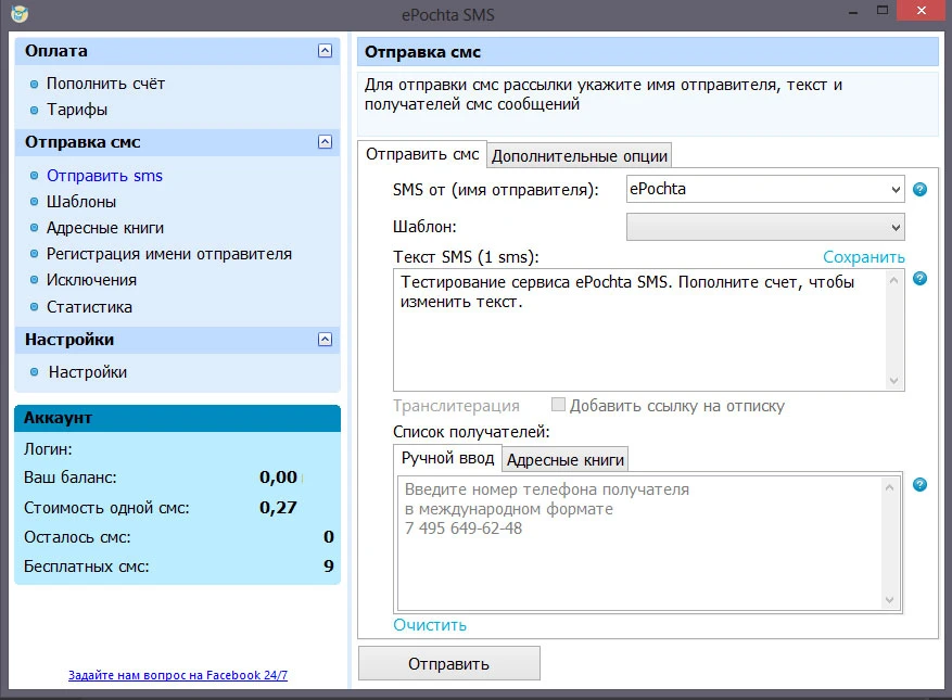 ePochta SMS — это программное решение для отправки SMS-сообщений с компьютера через интернет, предназначенное как для индивидуальных уведомлений, так и для массовых рассылок. Инструмент ориентирован на бизнес-задачи, где важна скорость доставки и автоматизация коммуникации с клиентами.