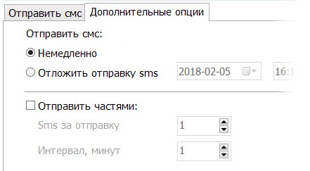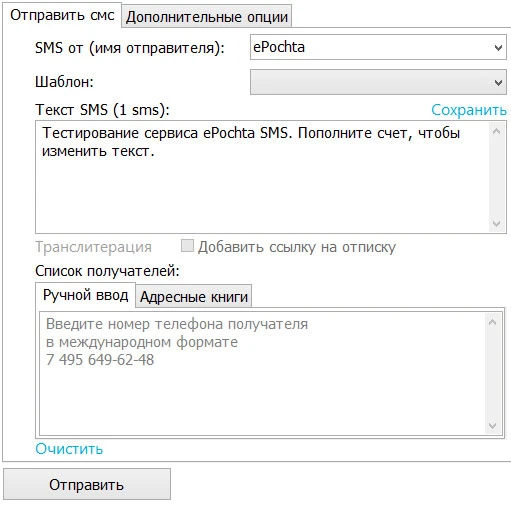 - отправка одиночных и массовых SMS-сообщений;