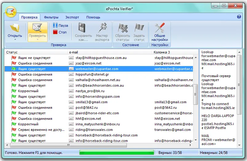 ePochta Verifier — это специализированный инструмент для проверки email-адресов на существование и корректность, предназначенный для очистки и оптимизации баз рассылки. Программа помогает снизить количество недоставленных писем и повысить эффективность email-кампаний.