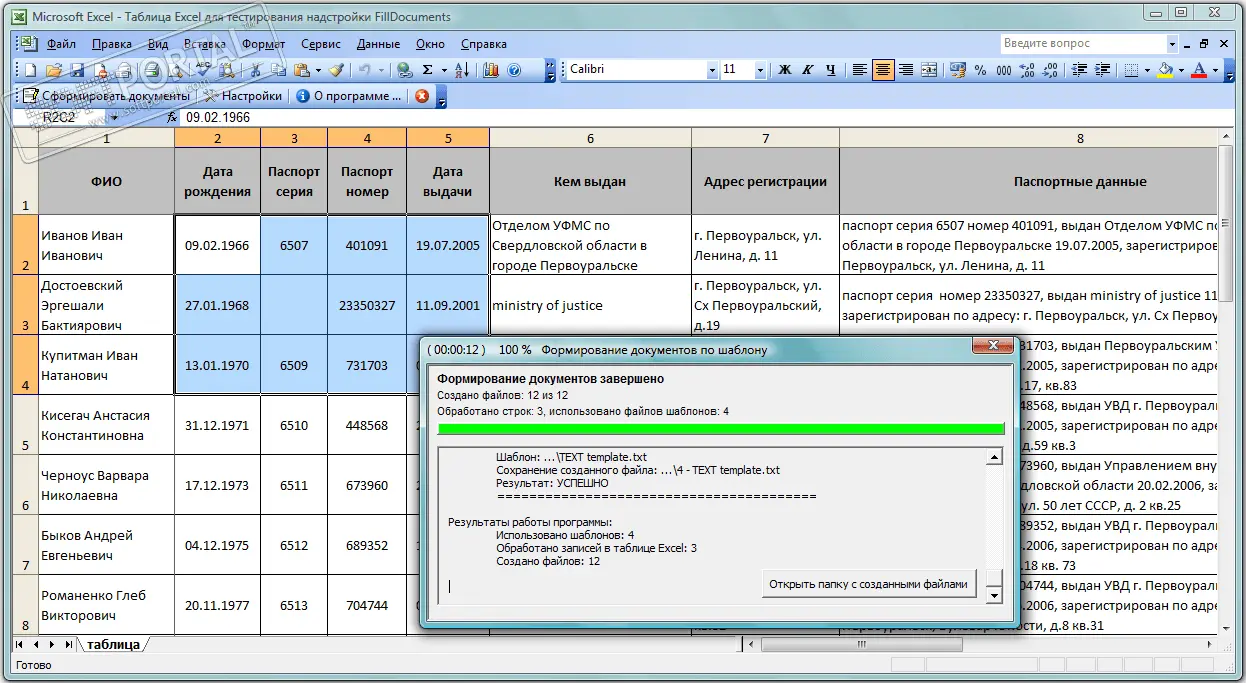 FillDocuments — это надстройка для Microsoft Excel, предназначенная для автоматического формирования документов по шаблонам с подстановкой данных из таблиц. Решение идеально подходит для задач, где требуется массовое создание договоров, писем, отчетов или других типовых документов с индивидуальными данными.