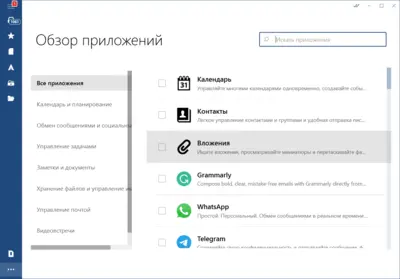 Сильной стороной клиента является интеграция с популярными сервисами и приложениями. Пользователь может подключить такие инструменты, как Facebook, Twitter, WhatsApp, Dropbox, Google Календарь, Asana, Todoist и другие, и работать с ними прямо внутри Mailbird, не открывая дополнительные вкладки или программы.