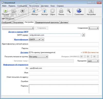 Одним из ключевых преимуществ является простота использования при достаточно широких возможностях. Интерфейс интуитивный, а основные действия — импорт базы, настройка письма и запуск рассылки — выполняются в несколько шагов.