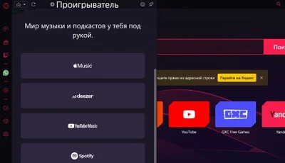 Opera GX интегрирует популярные сервисы прямо в боковую панель: Twitch с уведомлениями о начале трансляций, мессенджеры для общения, а также музыкальные платформы (Spotify, Apple Music, YouTube Music и другие). Можно серфить в интернете и параллельно смотреть стрим или слушать подкаст без переключения вкладок.