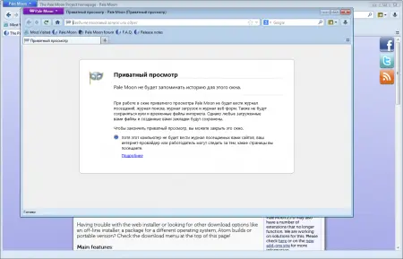 Pale Moon обеспечивает сопоставимый с Firefox уровень безопасности и стабильности. После установки можно импортировать историю, закладки и пароли из других браузеров. По умолчанию в качестве поисковой системы используется DuckDuckGo, ориентированная на защиту конфиденциальности, однако пользователь может выбрать Google, Bing или установить дополнительные поисковые плагины.
