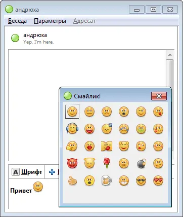широкий набор смайликов;