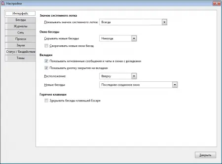 вкладки для одновременного ведения нескольких диалогов;