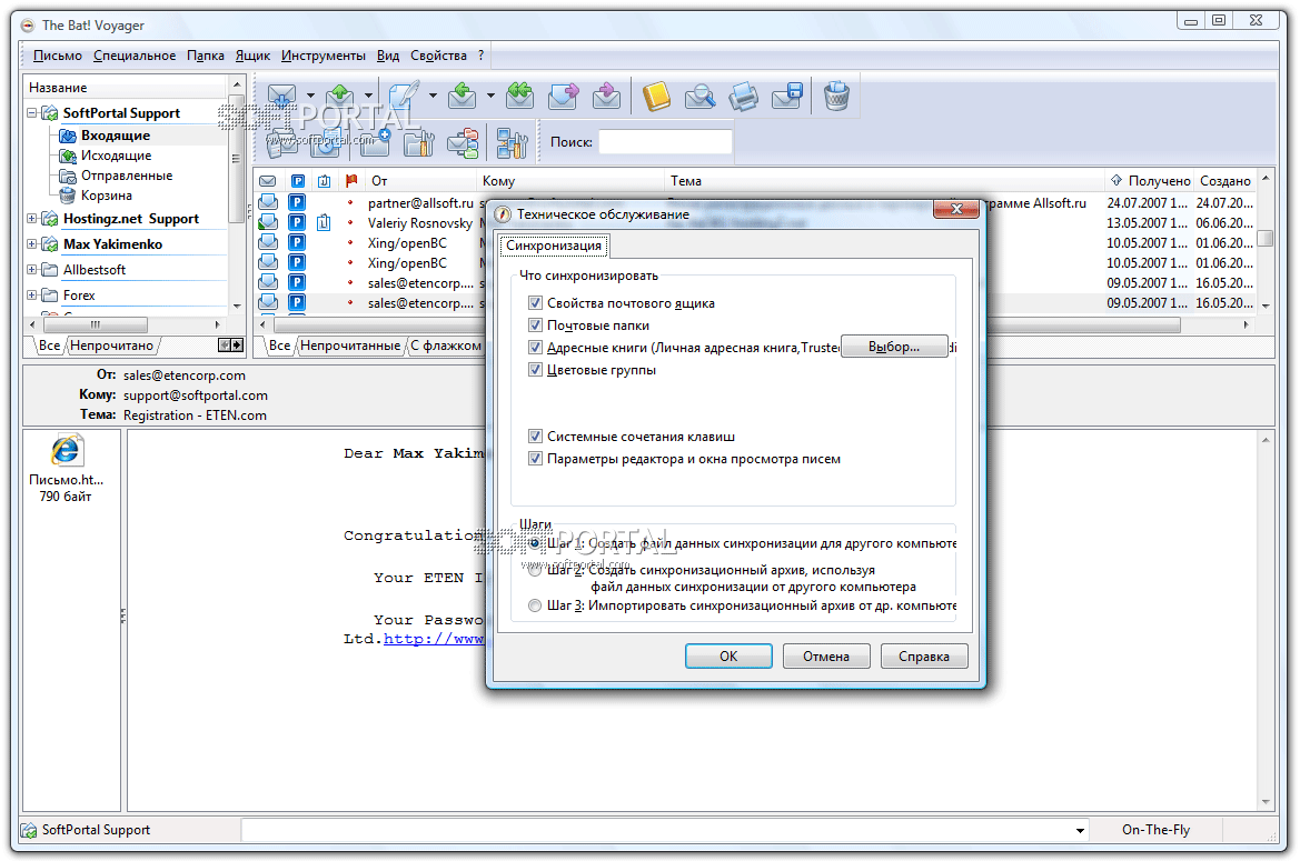 The Bat! Voyager поддерживает создание резервных копий, что позволяет легко восстановить всю переписку и настройки в случае необходимости. Процесс восстановления занимает минимум времени и не требует сложных действий, что критично при работе с важными данными.