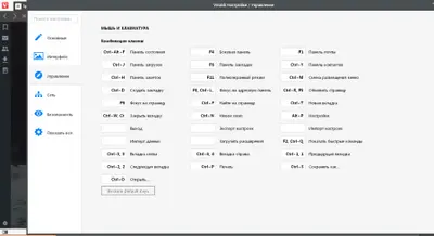 В разделе «Настройки» предусмотрено множество параметров персонализации. Панель вкладок можно разместить сверху, снизу или сбоку, а дополнительные панели при необходимости скрываются. Поддерживается полноценное управление с клавиатуры и гибкая настройка горячих клавиш.