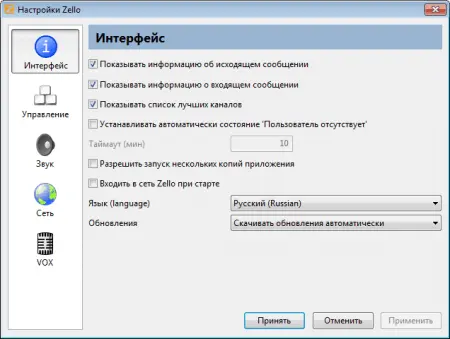 Где посмотреть версию программы Zello 2.6.0.0?