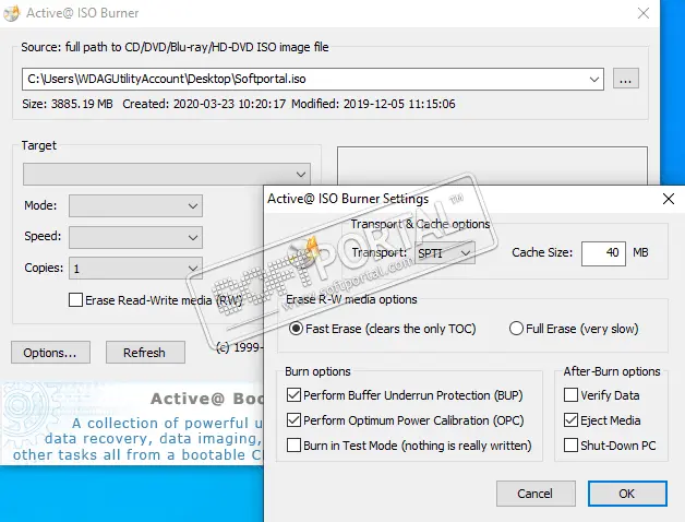 Основные возможности Active ISO Burner