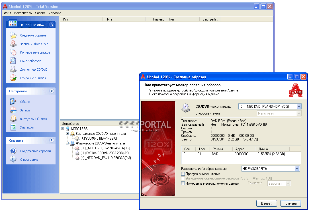 Alcohol 52% предназначена в основном для работы с виртуальными приводами и образами дисков.