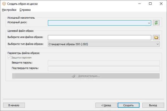 Создание образов дисков из файлов, папок или физических носителей.
