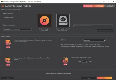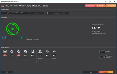 Ashampoo Burning Studio — удобная и функциональная программа для записи данных на CD, DVD и Blu-ray диски. С её помощью можно легко записывать файлы, создавать копии дисков, формировать образы и подготавливать мультимедийные проекты. Приложение также позволяет создавать слайд-шоу, записывать видео-диски с анимированными меню и работать со специальными носителями, включая BDXL и M-Disc.
