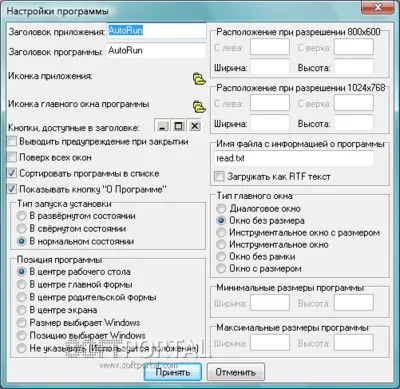 В архив с программой также включён специальный конфигуратор AutoRun, с помощью которого можно легко редактировать параметры и создавать собственные варианты автозапуска.