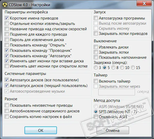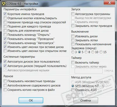 Основные возможности CDSlow