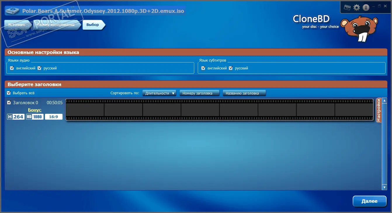 CloneBD — это удобное и функциональное программное решение, предназначенное для копирования Blu-Ray дисков без защиты на жесткий диск компьютера или на другой Blu-Ray носитель. Программа отличается понятным интерфейсом и пошаговым процессом работы, благодаря чему даже начинающий пользователь сможет быстро разобраться с основными функциями. Для выполнения операции достаточно нескольких кликов мышью. Если в процессе возникают вопросы, встроенный помощник — дружелюбный бобер Берт в правом верхнем углу интерфейса — подскажет необходимые действия.