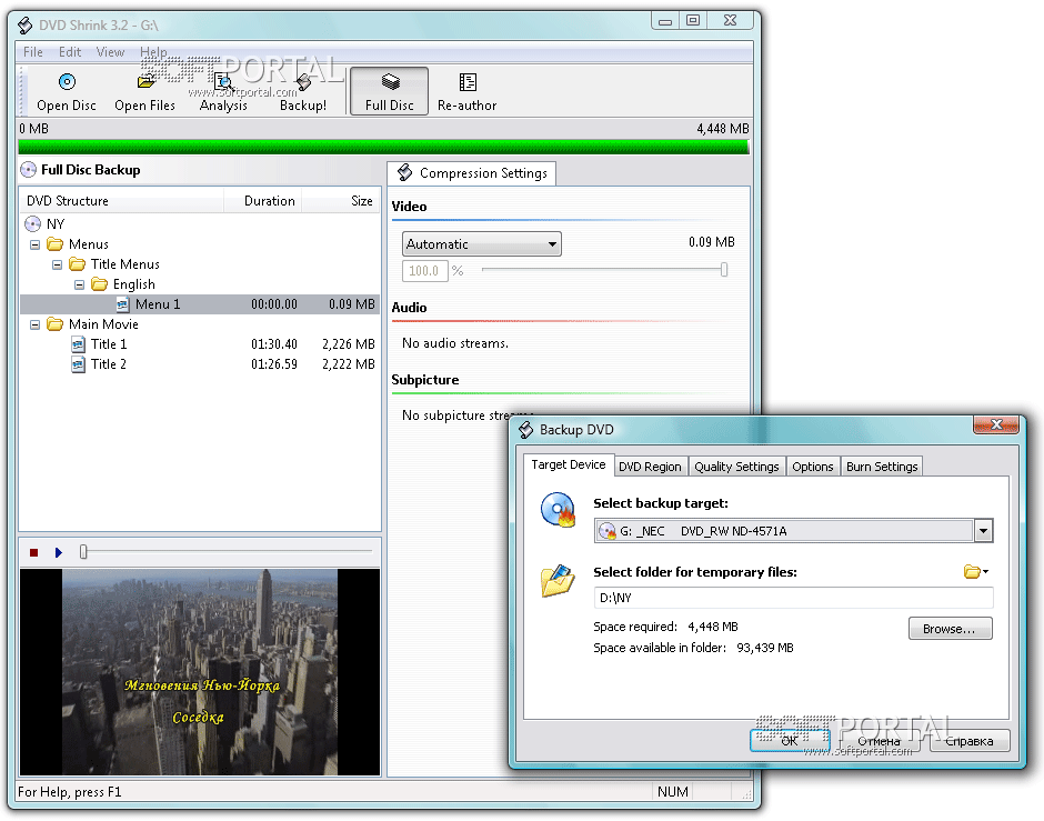Основное назначение программы — создание резервных копий DVD-фильмов и подготовка их к записи на DVD-R или DVD+R носители.