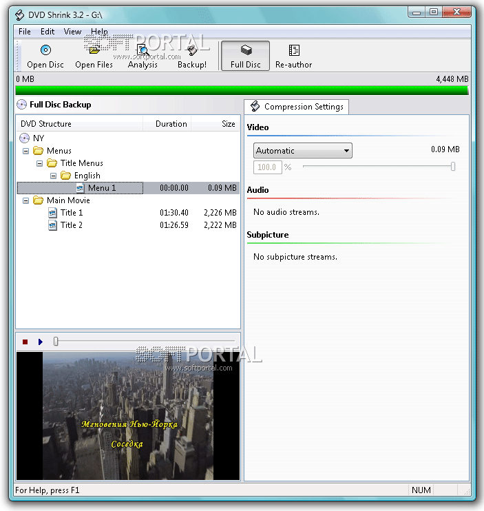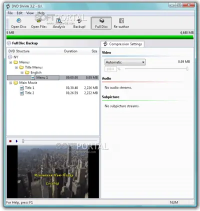 DVD Shrink позволяет редактировать структуру DVD перед копированием. Например, пользователь может: