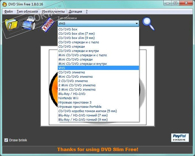 Одной из полезных функций DVD Slim является возможность автоматического масштабирования обложек. Программа может преобразовать стандартные обложки под различные размеры коробок, включая:
