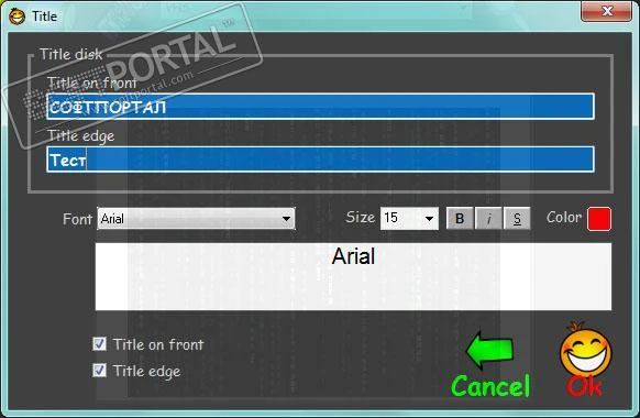 Программа позволяет добавлять текстовые элементы на обложку. Пользователь может указать: