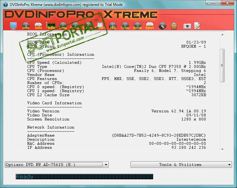 DVDInfoPro предоставляет детальные сведения о всех установленных в системе оптических приводах. Программа поддерживает широкий спектр устройств, включая: