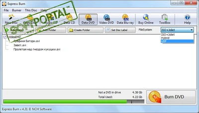 Выбор формата файловой системы при создании DVD-дисков.