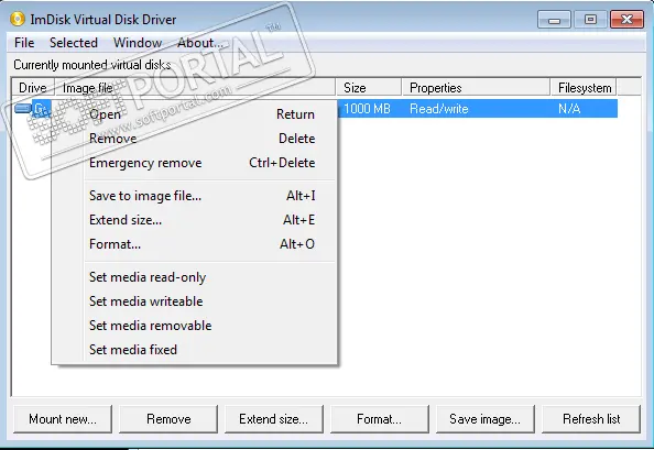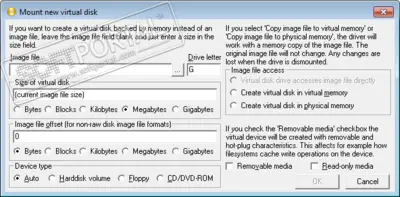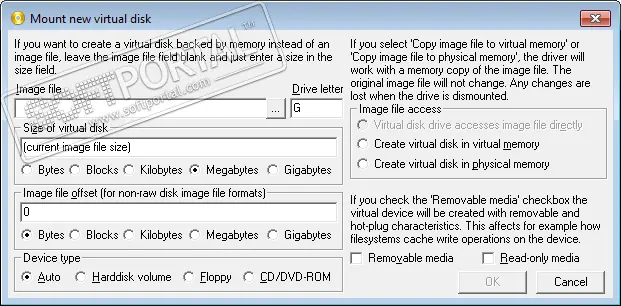 Программа позволяет создавать виртуальные устройства разных типов. В частности, ImDisk поддерживает эмуляцию:
