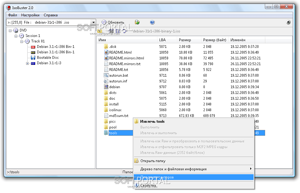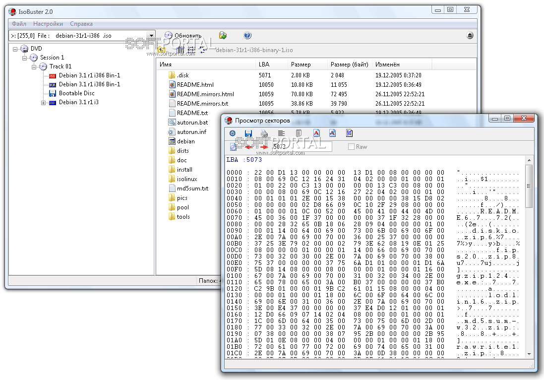 ISO Buster — это специализированная утилита, предназначенная для прямого доступа к файловой структуре оптических дисков и работе с их образами. Программа позволяет анализировать содержимое CD и DVD, извлекать файлы, дорожки и сектора, а также восстанавливать данные даже с повреждённых носителей.