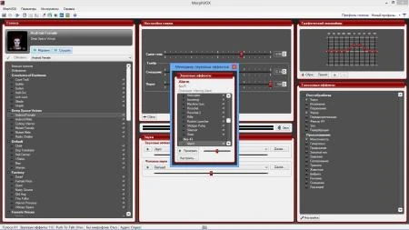 Помимо изменения тембра, утилита содержит набор встроенных звуковых эффектов — например, сигналы, звуки природы и другие аудио-вставки. Их можно воспроизводить через специальную панель управления в интерфейсе. Изменённый голос можно передавать только собеседнику или выводить одновременно через динамики.