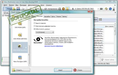 Защита данных при записи с использованием технологии SecurDisc.