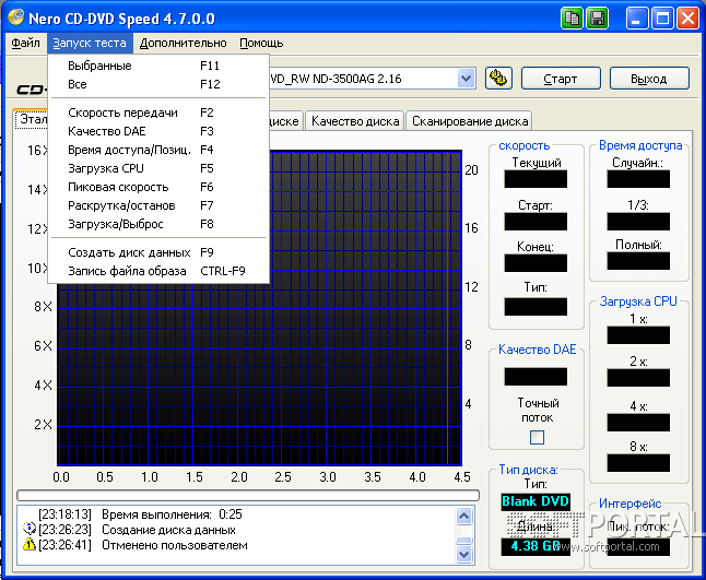 Nero CD-DVD Speed позволяет определить тип доступа к данным, который используется приводом. Среди поддерживаемых режимов:
