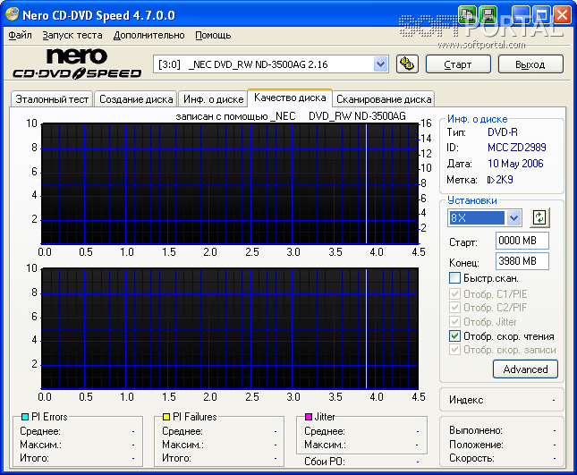 Приложение часто используется для проверки качества записанных дисков и анализа технических возможностей CD/DVD-приводов.