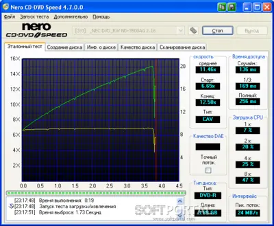 Одна из основных функций программы — измерение скорости чтения данных с оптического носителя. Утилита строит график скорости и позволяет определить, насколько стабильно привод работает с диском.