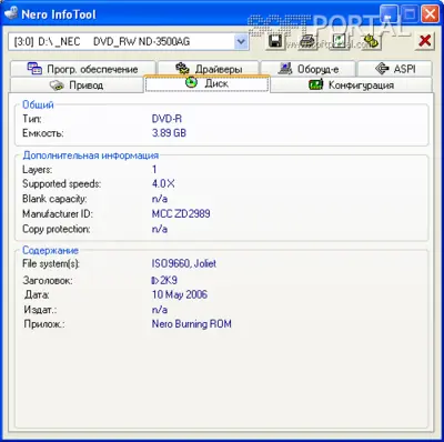 Основные возможности Nero InfoTool
