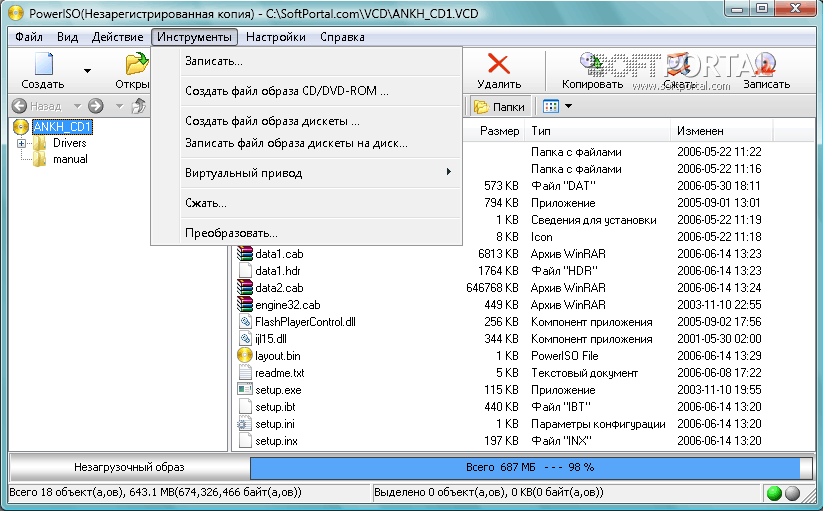 PowerISO предоставляет полный набор функций для работы с образами дисков. С помощью программы можно: