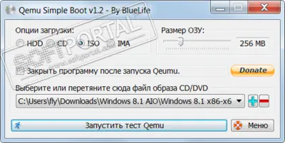 Qemu Simple Boot отличается максимально простым интерфейсом. Для запуска образа достаточно выполнить несколько действий: