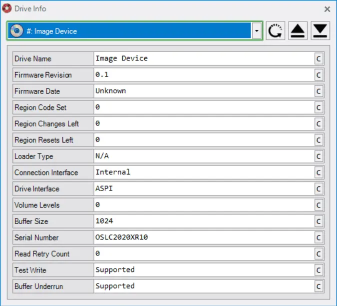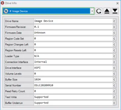 Отображение подробной информации о диске в приводе: производитель, объем, доступное пространство и другие параметры.
