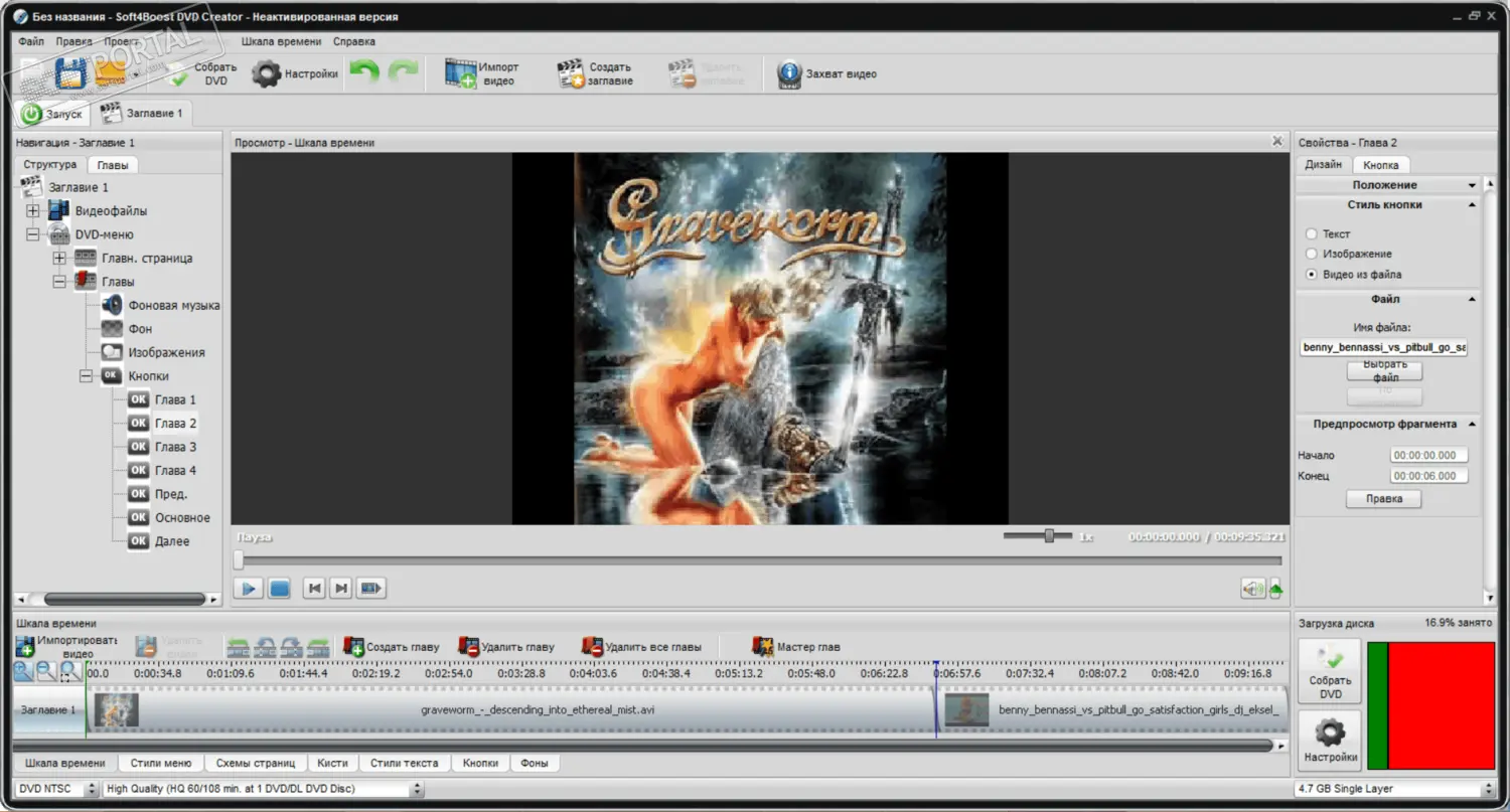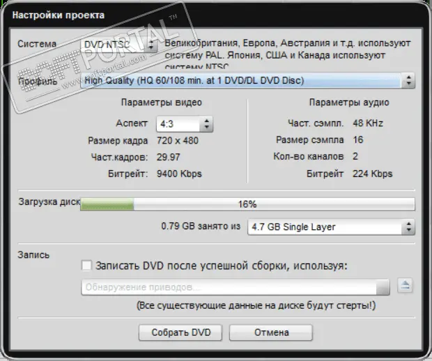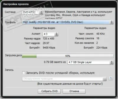 Запись готового проекта на DVD прямо из программы.