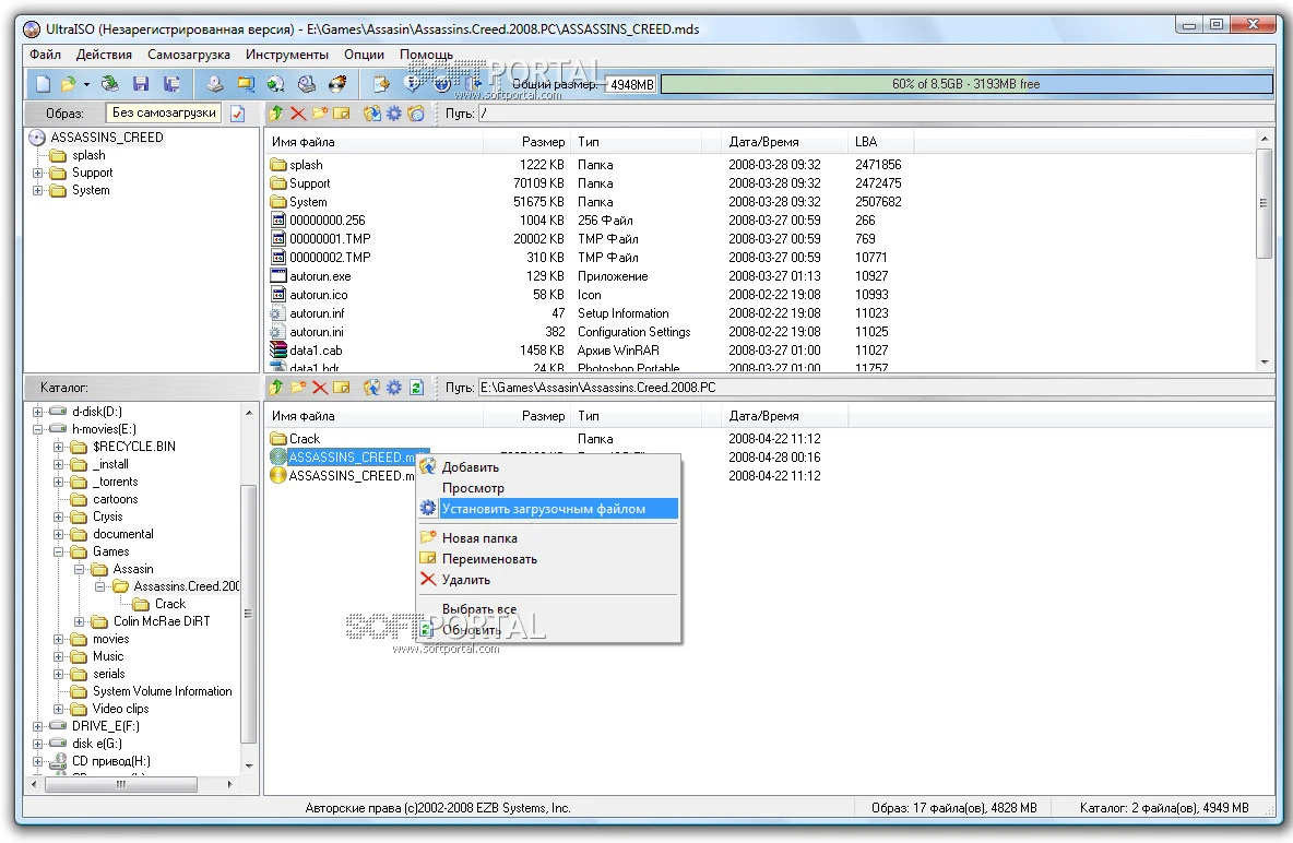 Одной из особенностей UltraISO является возможность редактировать содержимое образа напрямую, без необходимости предварительной распаковки. Пользователь может добавлять, удалять или изменять файлы и папки внутри образа, что значительно упрощает работу с установочными дисками и архивами данных.