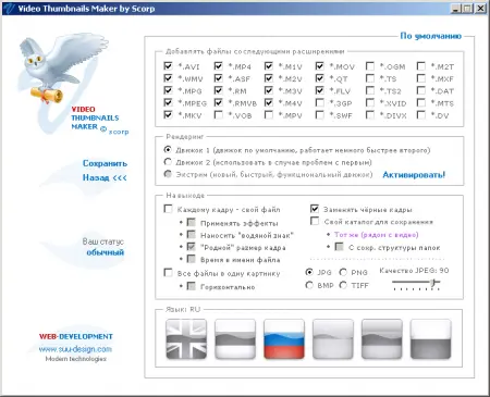 три движка рендеринга (второй рекомендуется для 64-битных систем);