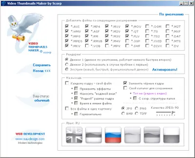 Обновлена бесплатная утилита Video Thumbnails Maker, предназначенная для создания файлов предварительного просмотра видео. Программа извлекает кадры из роликов с заданным интервалом и сохраняет их в виде графических изображений.