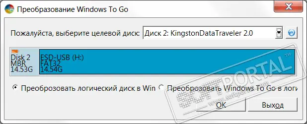 создание загрузочной среды Windows To Go